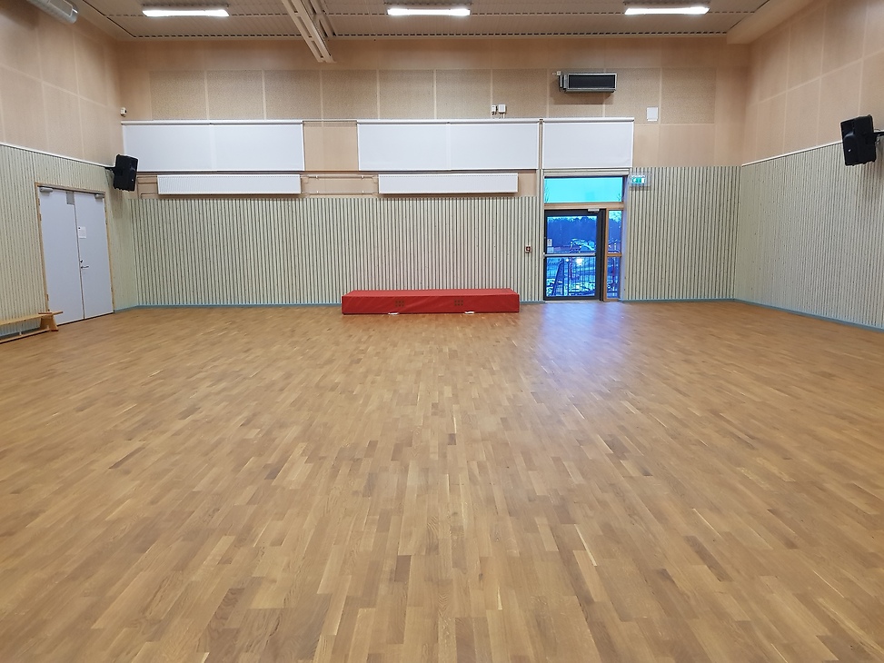 Lilla hallen, C-hallen, är 15,5*14 meter med ekparkett.